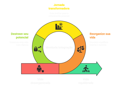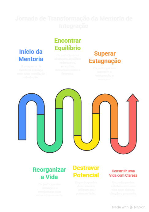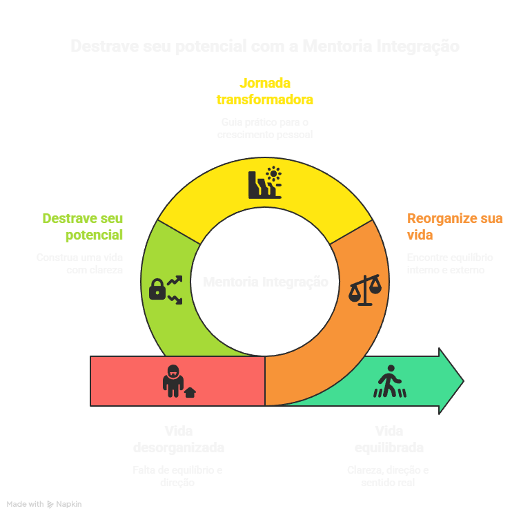 A mentoria Integração foi criada para ajudar você a reorganizar sua vida de dentro para fora, encontrando equilíbrio entre corpo, emoções, relacionamentos e finanças.